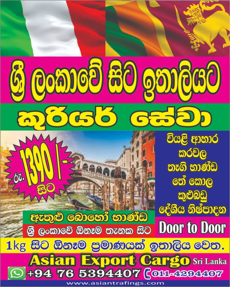ඕනෑම දෙයක් ඕනෑම රටකට අවශ්ය ඕනෑම ප්රමාණයකින් යැවීම සදහා අප හා එක්වන්න .